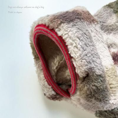 フード口は赤系の細ボーダーでトリミング